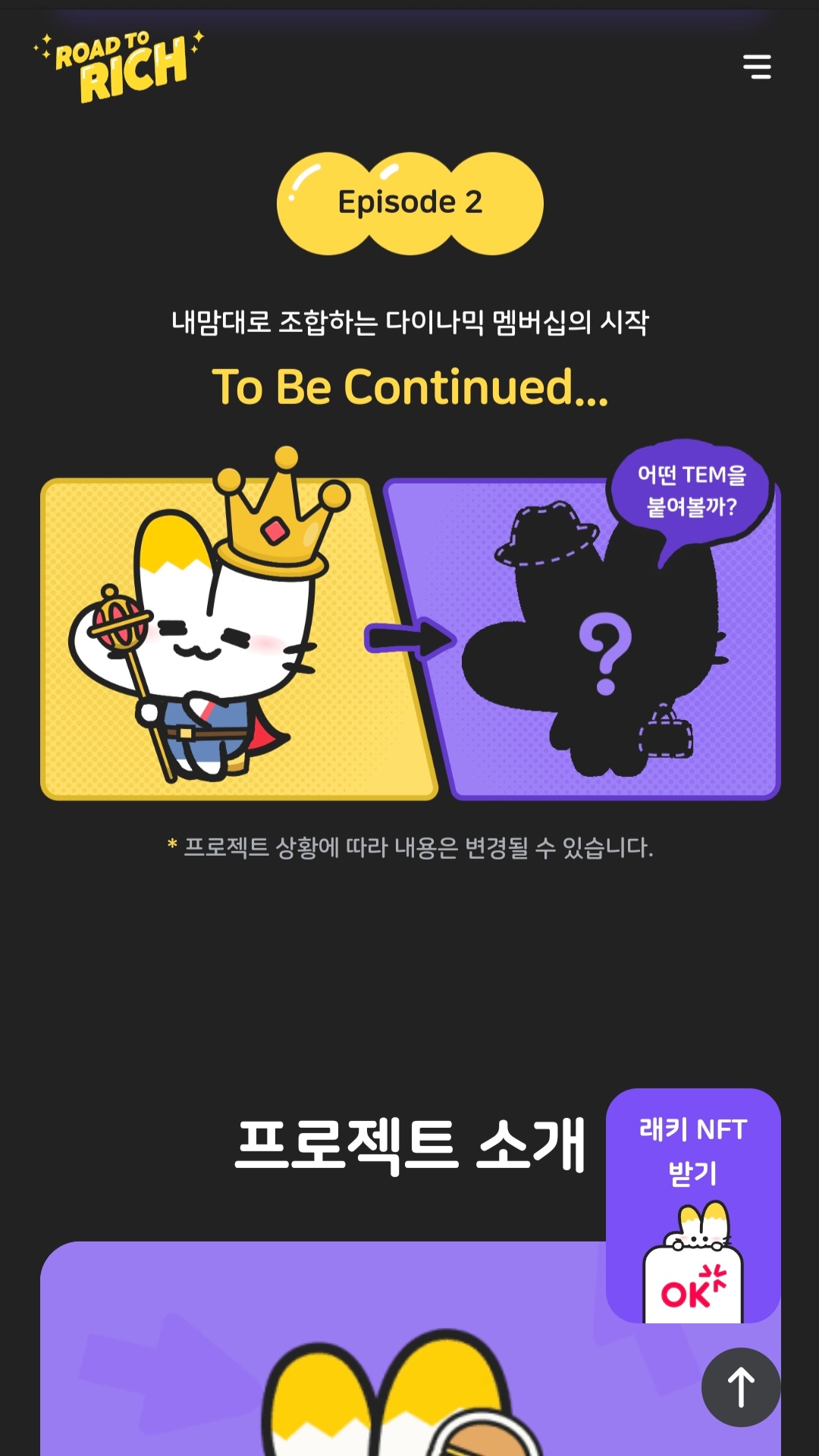 먼저 시작한 프로젝트는 총 상금 50억원의 래키 부자되기 프로젝트입니다. 에피소드 1으로 명명되었는데요.
