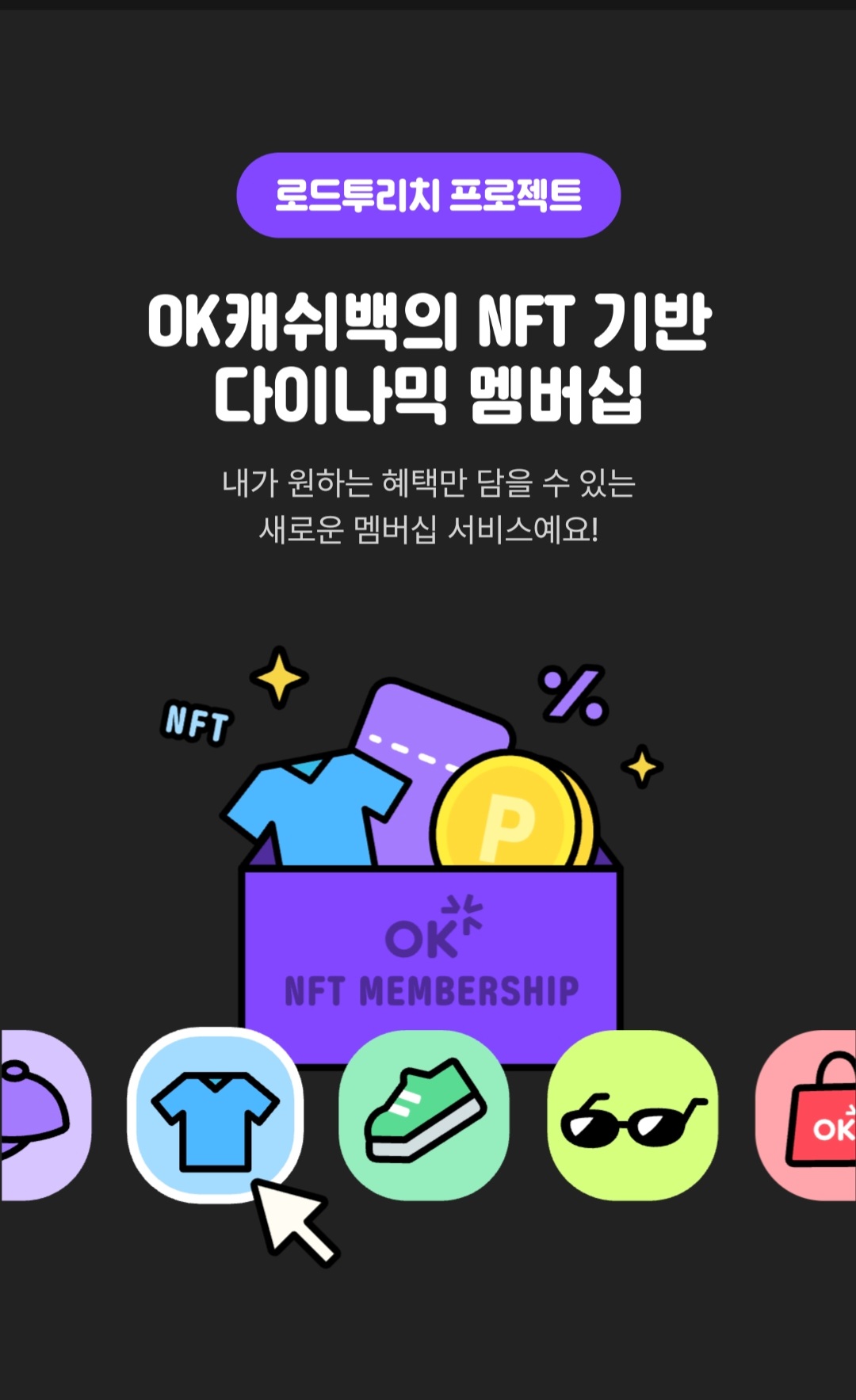 오늘 소개해 드릴 내용은 오케이캐시백에서 진행하는 NFT 멤버십 프로젝트를 소개해 드릴게요.