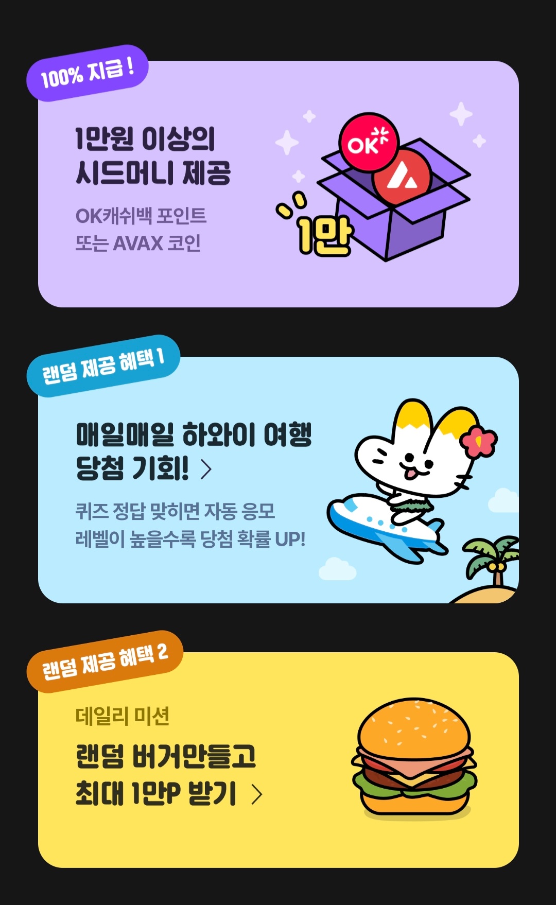 보상은 오케이캐시백 5000포인트 혹은 0.1 avax를 받을 수 있습니다.
